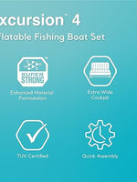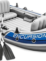 SPACIOUS FOUR-PERSON DESIGN – With an inflated size of 10'4" x 5'5" x 1'5" and a maximum weight capacity of 1,100 lbs, the Intex Excursion 4 inflatable boat comfortably fits up to 4 adults, making it ideal for lakes, rivers, and calm waters.