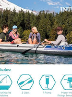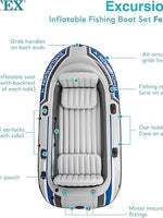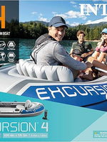 INTEX 68324EP Excursion 4 Inflatable Boat Set: Includes Deluxe 54in Boat Oars and High-Output Pump – Adjustable Seats with Backrest – Fishing Rod Holders – 4-Person – 1100lb Weight Capacity